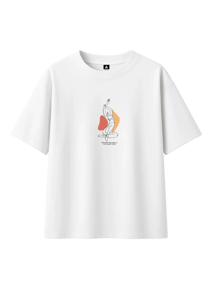T-shirt Minimaliste Brodé 100% Coton – Design Femme Assise