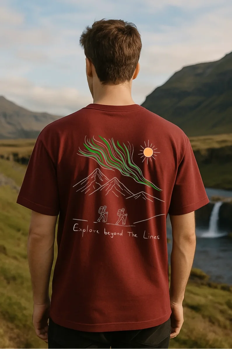 T-shirt Minimaliste Brodé 100% Coton – Design Randonnée