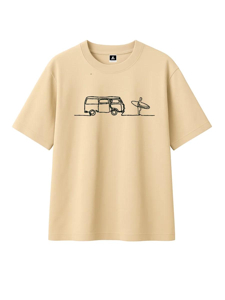 T-shirt Minimaliste Brodé 100% Coton – Design Surf (F)