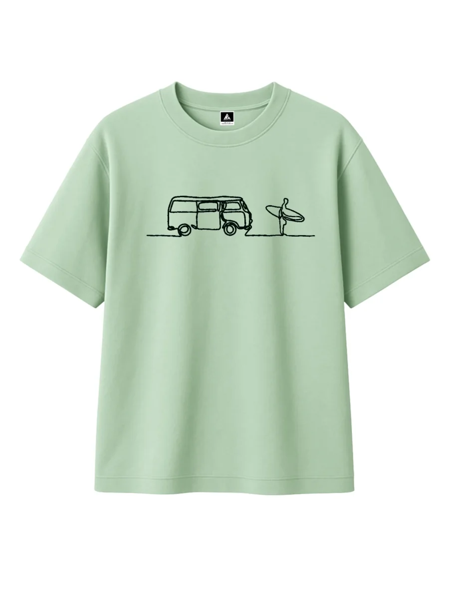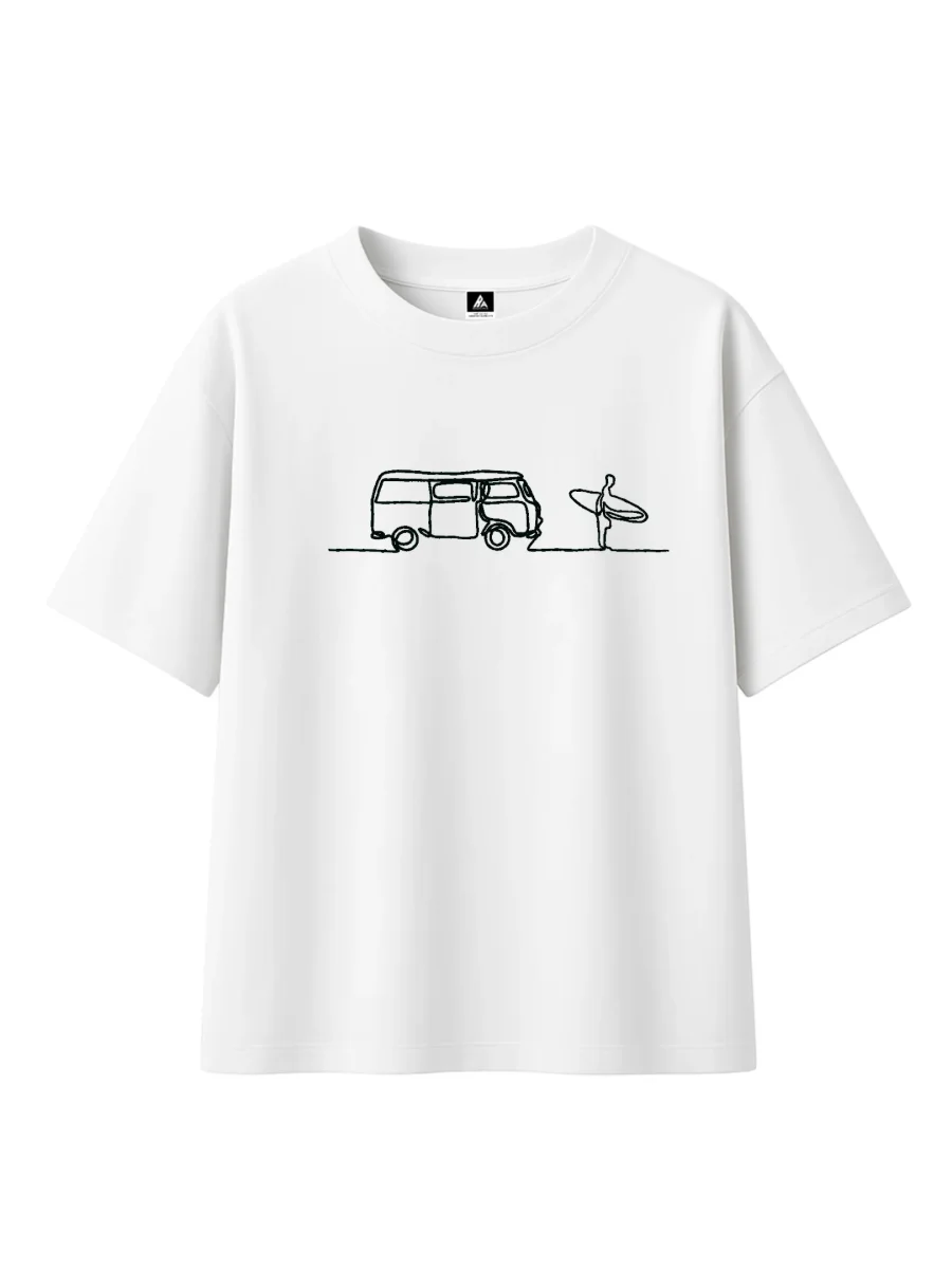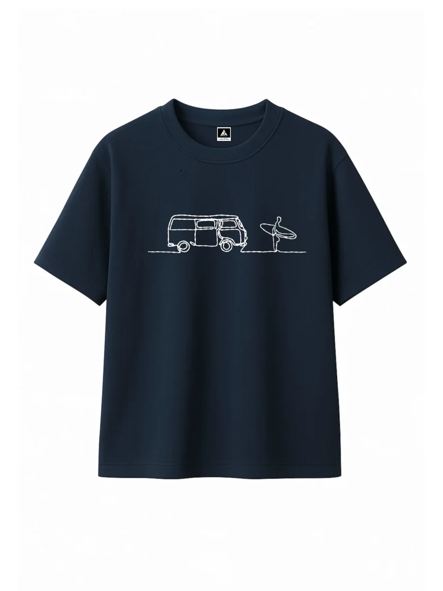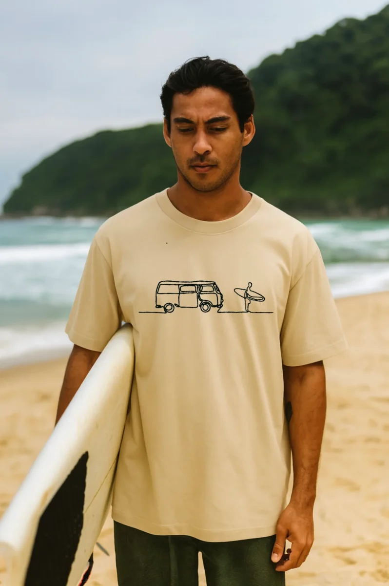 T-shirt Minimaliste Brodé 100% Coton – Design Surf