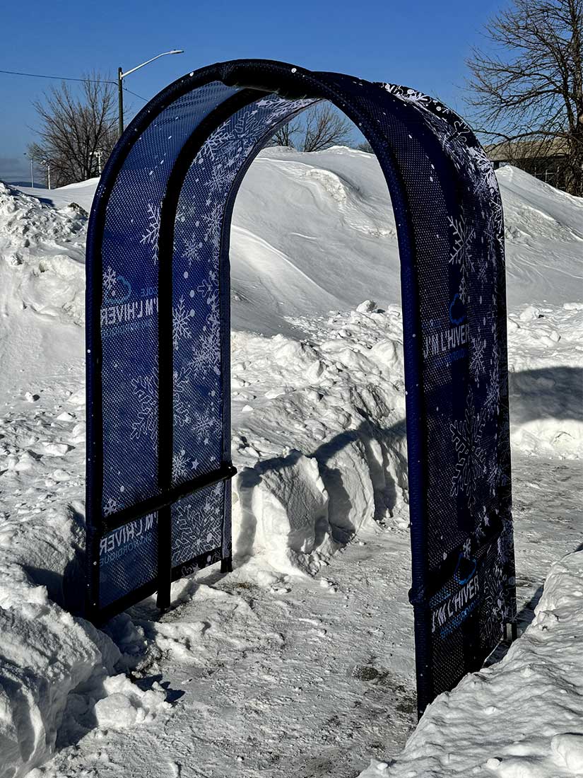 Le tunnel en toile de Securi-Sport est un équipement indispensable pour votre école de ski. Grâce à ses pieds de 18‘‘ il est facile à enfoncer dans la neige, et à déplacer. Structure en aluminium anodisé démontable pour faciliter le rangement.