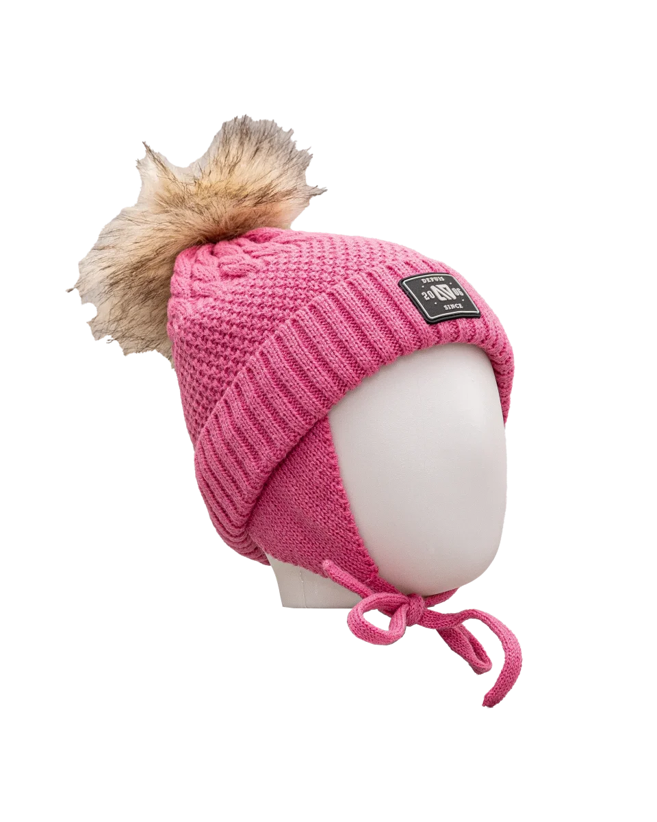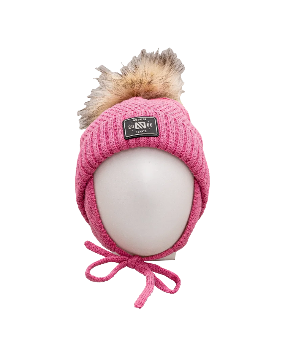 Tuque tricot pompom 2 14y – Rose – #97D-146