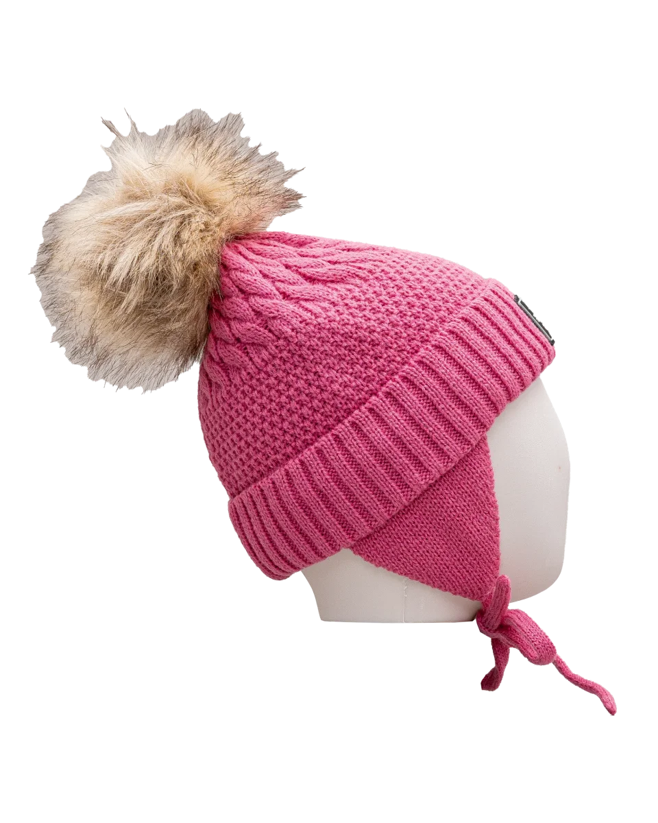 Cette tuque Nano en tricot rose garde les enfants bien protégés du froid. Sa matière douce assure chaleur et confort. Les cordons à nouer garantissent un ajustement parfait. Le pompon en fausse fourrure ajoute une touche tendance et amusante.