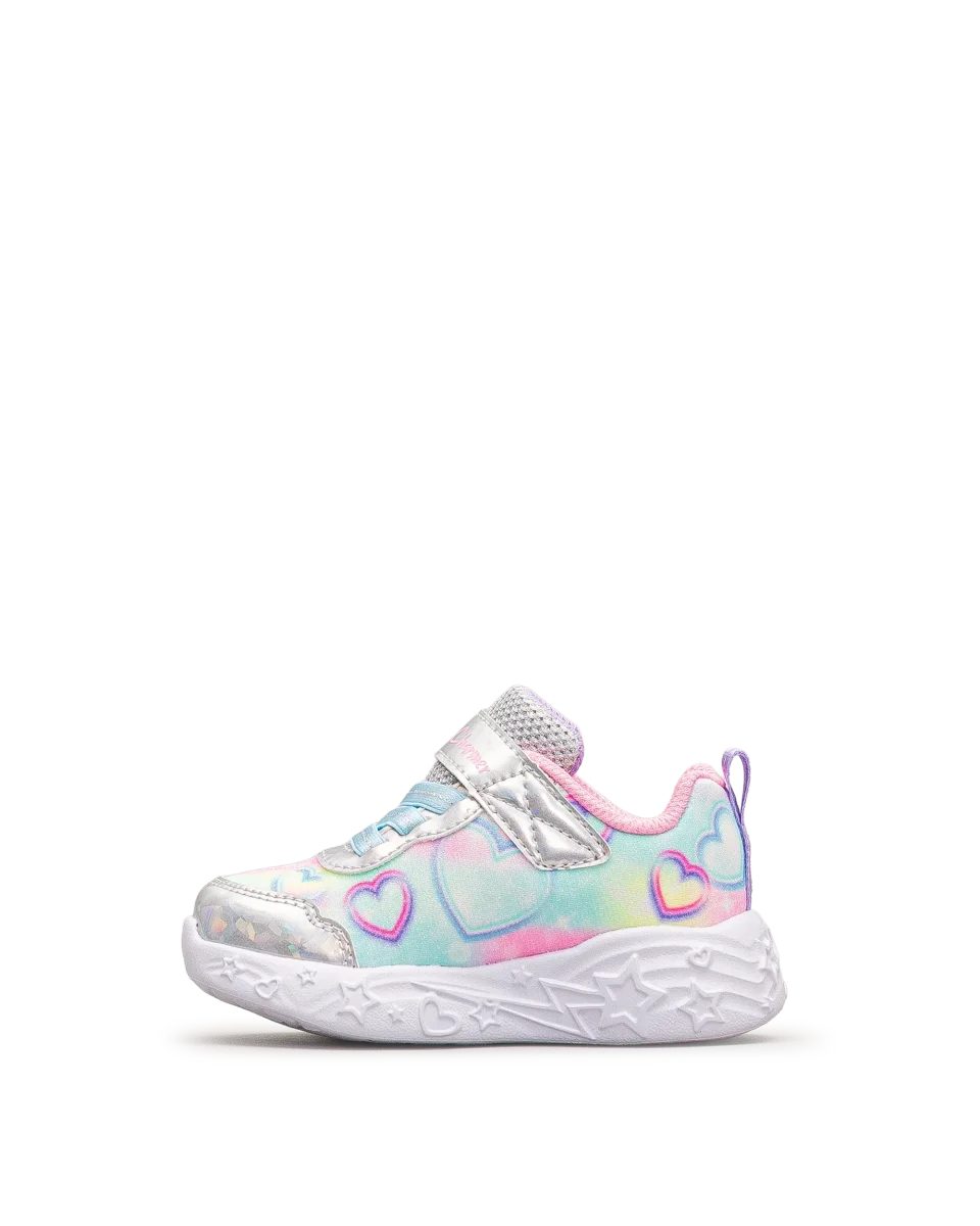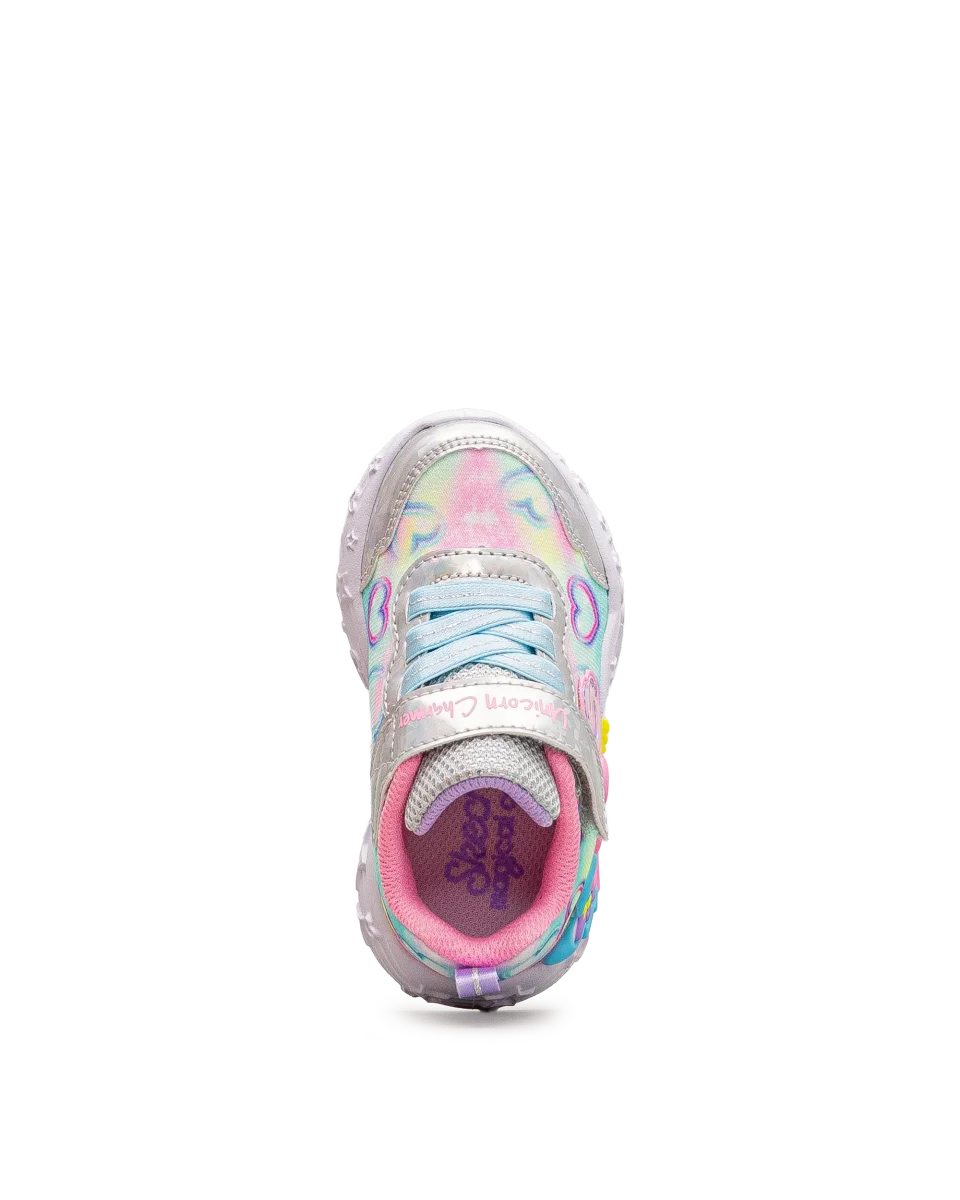 Ces chaussures Skechers argentées sont parfaites pour les enfants qui aiment briller. Leur licorne en relief et leurs lumières intégrées stimulent l’imaginaire. Faciles à enfiler grâce à la bande autoagrippante, elles assurent un bon maintien. Un modèle amusant qui allie confort et féérie.