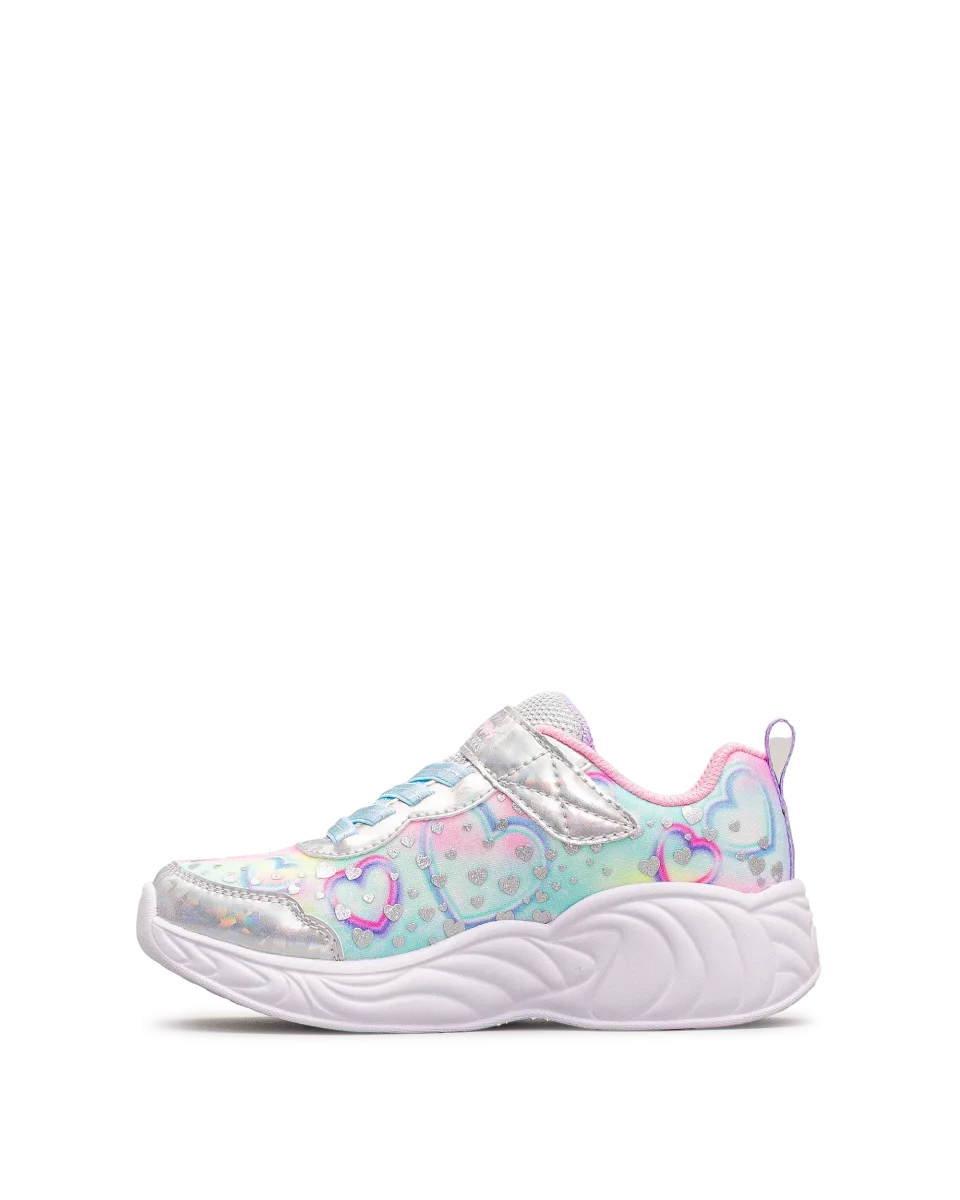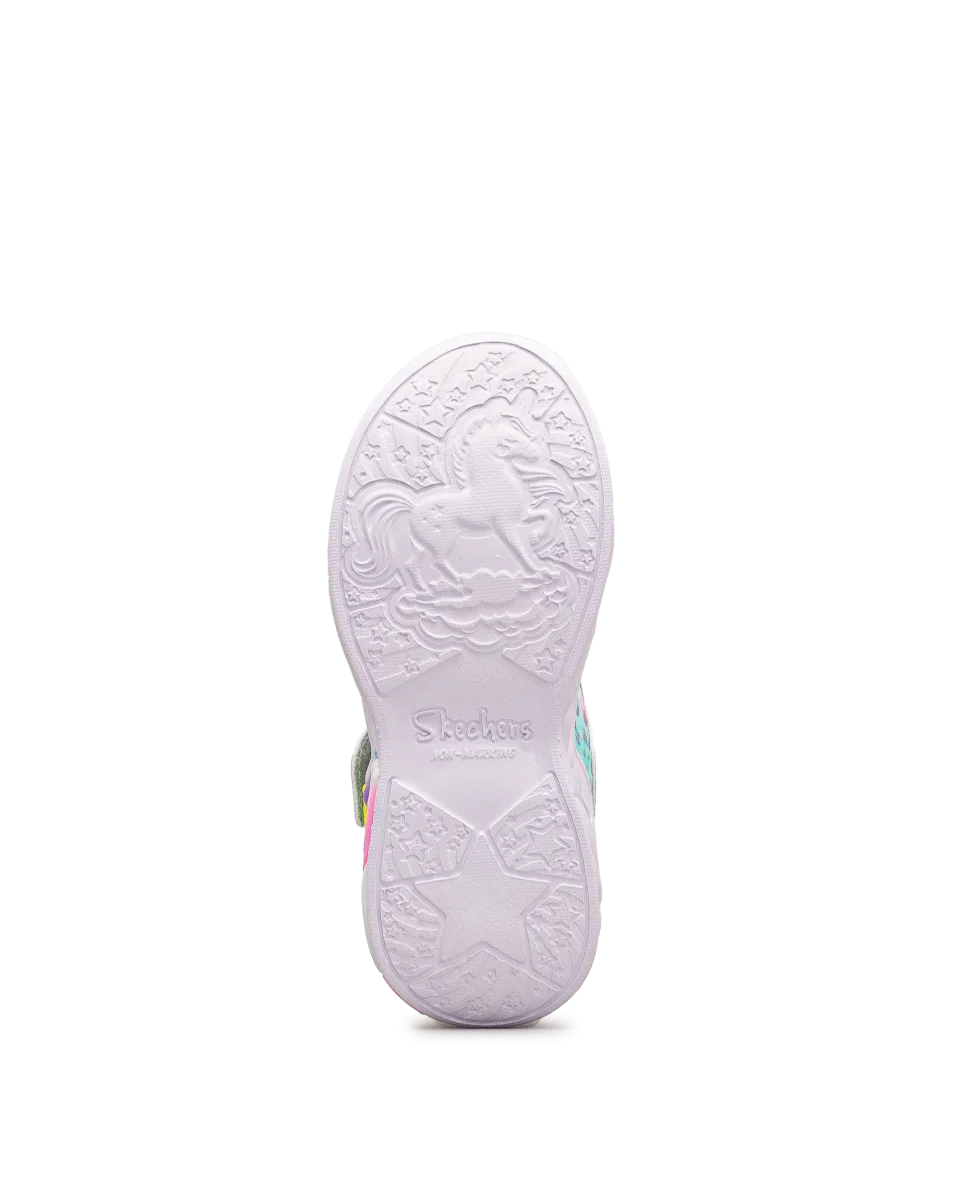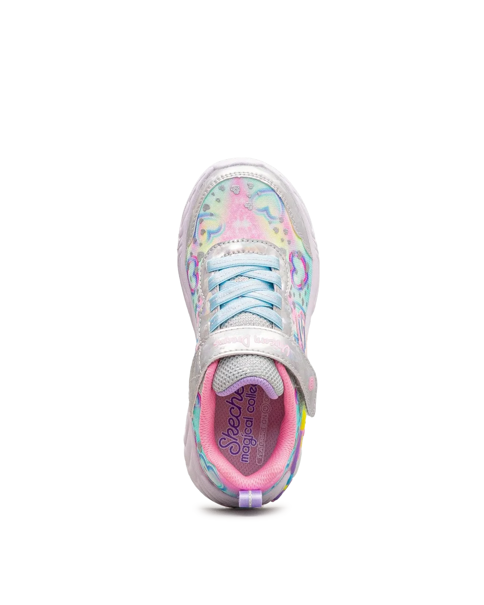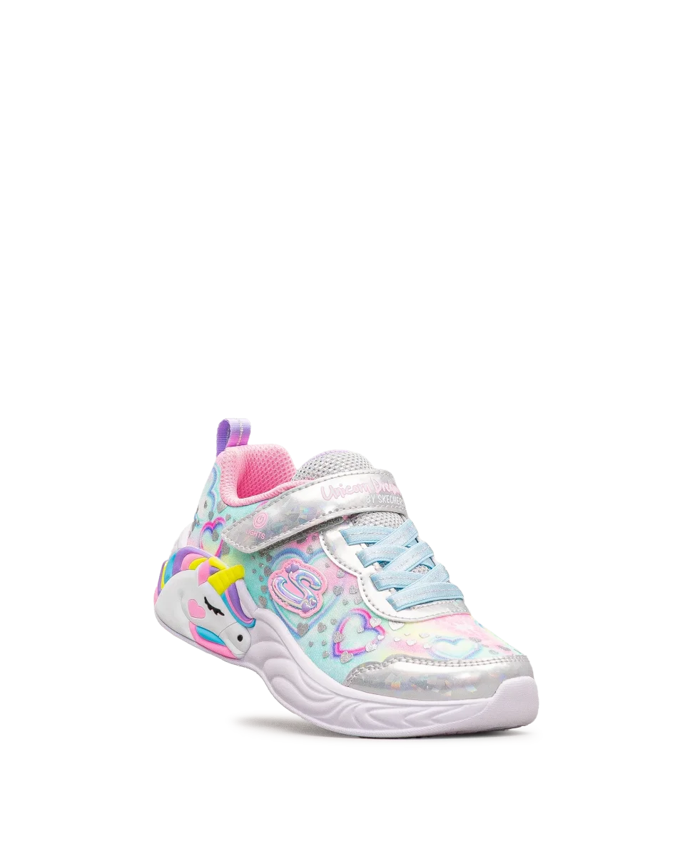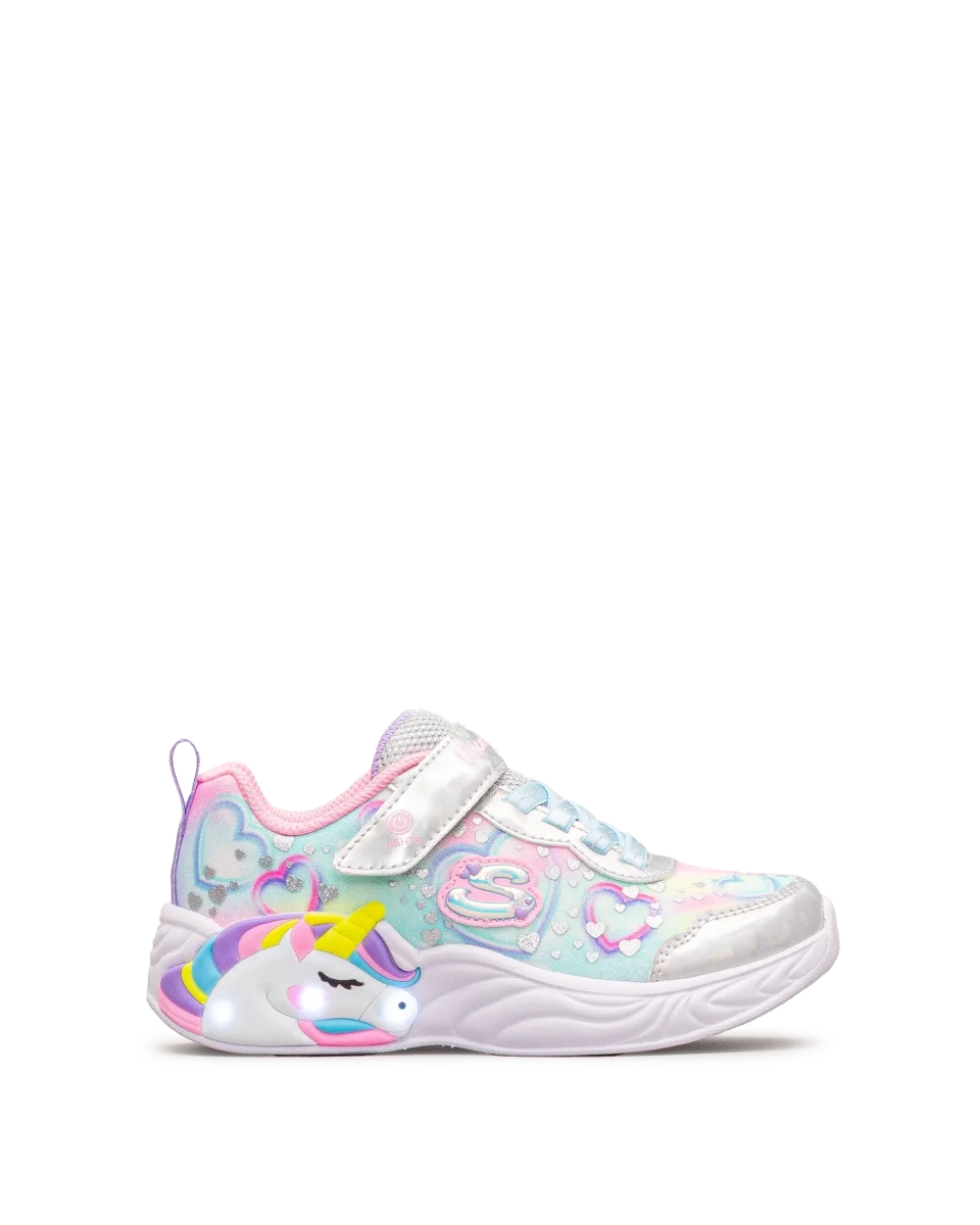 Ces chaussures Skechers argent transforment chaque sortie en aventure magique. Leur design coloré avec une licorne texturée plaira aux jeunes rêveurs. Les lumières intégrées dans la semelle ajoutent un effet spectaculaire à chaque mouvement. Une création pleine d’imagination signée Skechers.