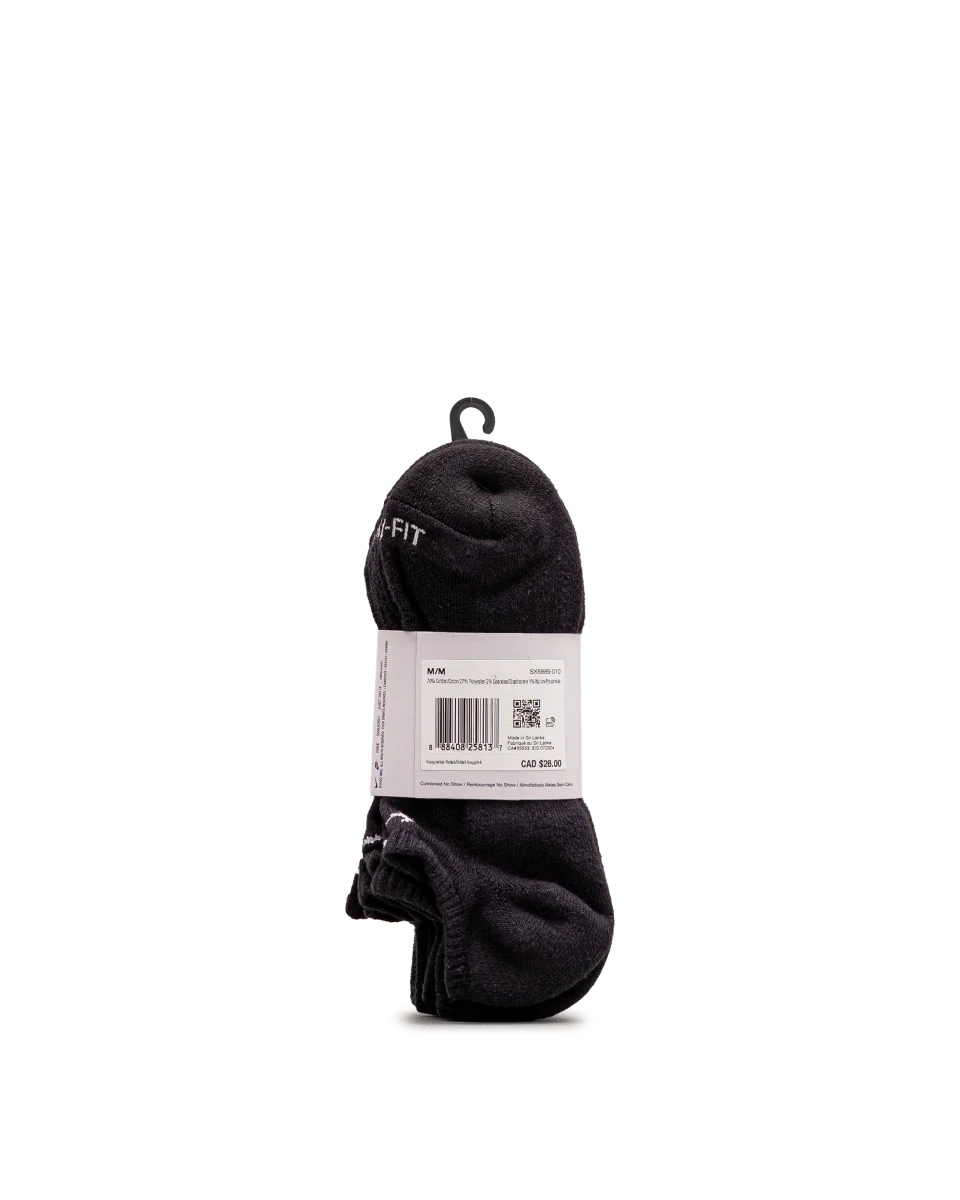 Ces chaussettes Nike noires assurent confort et maintien tout au long de la journée. Leur tissu Dri-FIT évacue l’humidité pour garder les pieds au sec. Leur coupe discrète se porte avec tous types de chaussures. Un lot essentiel pour le sport et les activités quotidiennes.