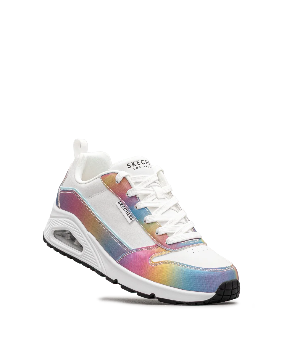 Ces espadrilles Skechers offrent une touche lumineuse avec leur effet irisé multicolore. Conçues pour un confort optimal, elles possèdent une semelle bien amortie. Leur design moderne ajoute une touche dynamique à votre garde-robe. Un choix parfait pour un style qui ne passe pas inaperçu.