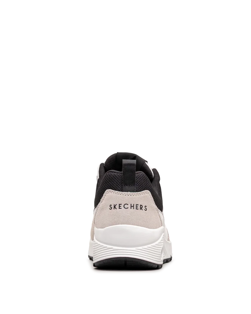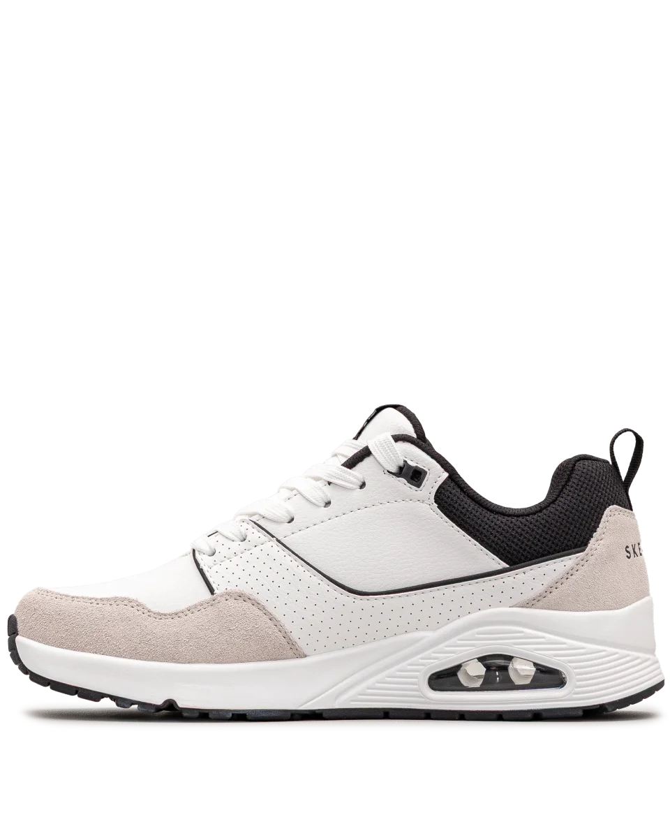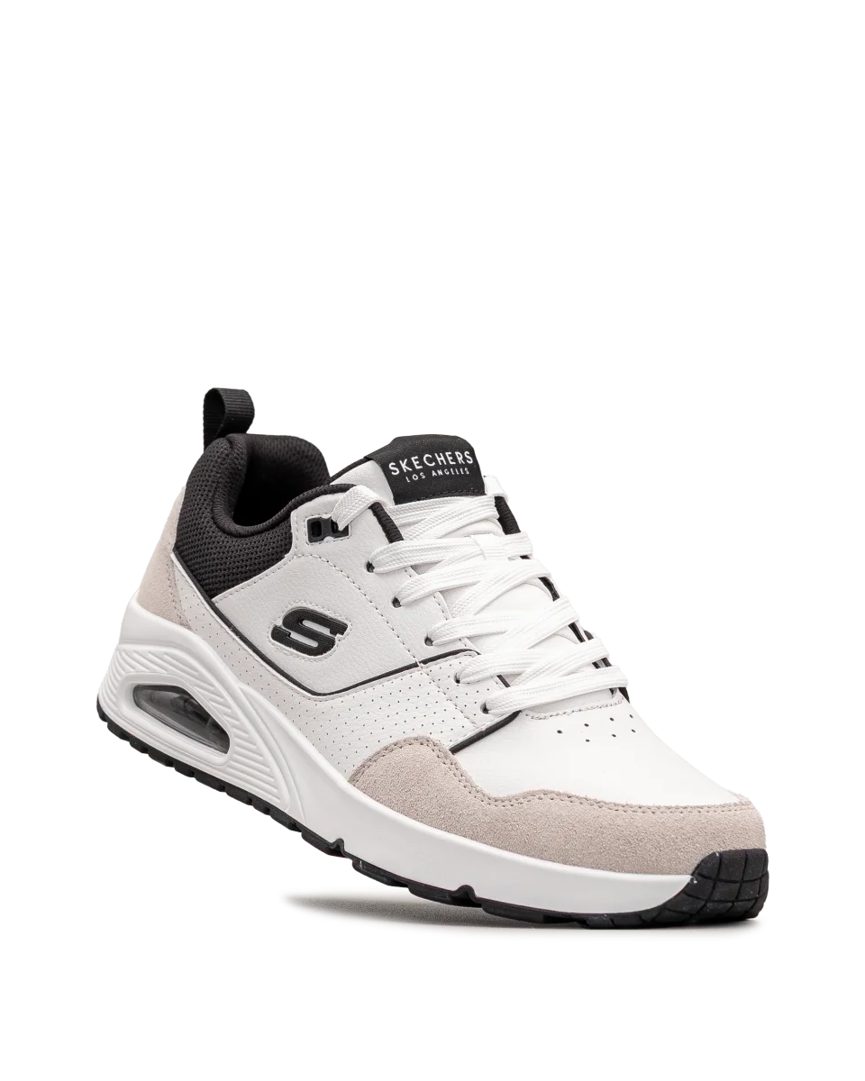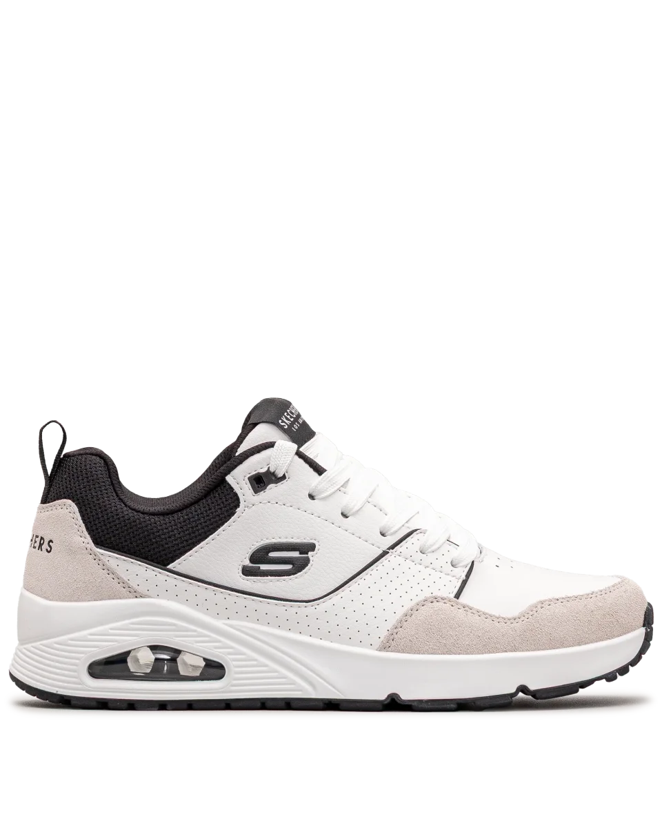 Ces chaussures Skechers blanc et noir allient design épuré et technologie performante. Leur semelle avec coussin d’air procure un amorti optimal pour un usage quotidien. Faciles à porter avec un look sportif ou urbain, elles assurent style et confort. Un modèle polyvalent pour un mode de vie actif.