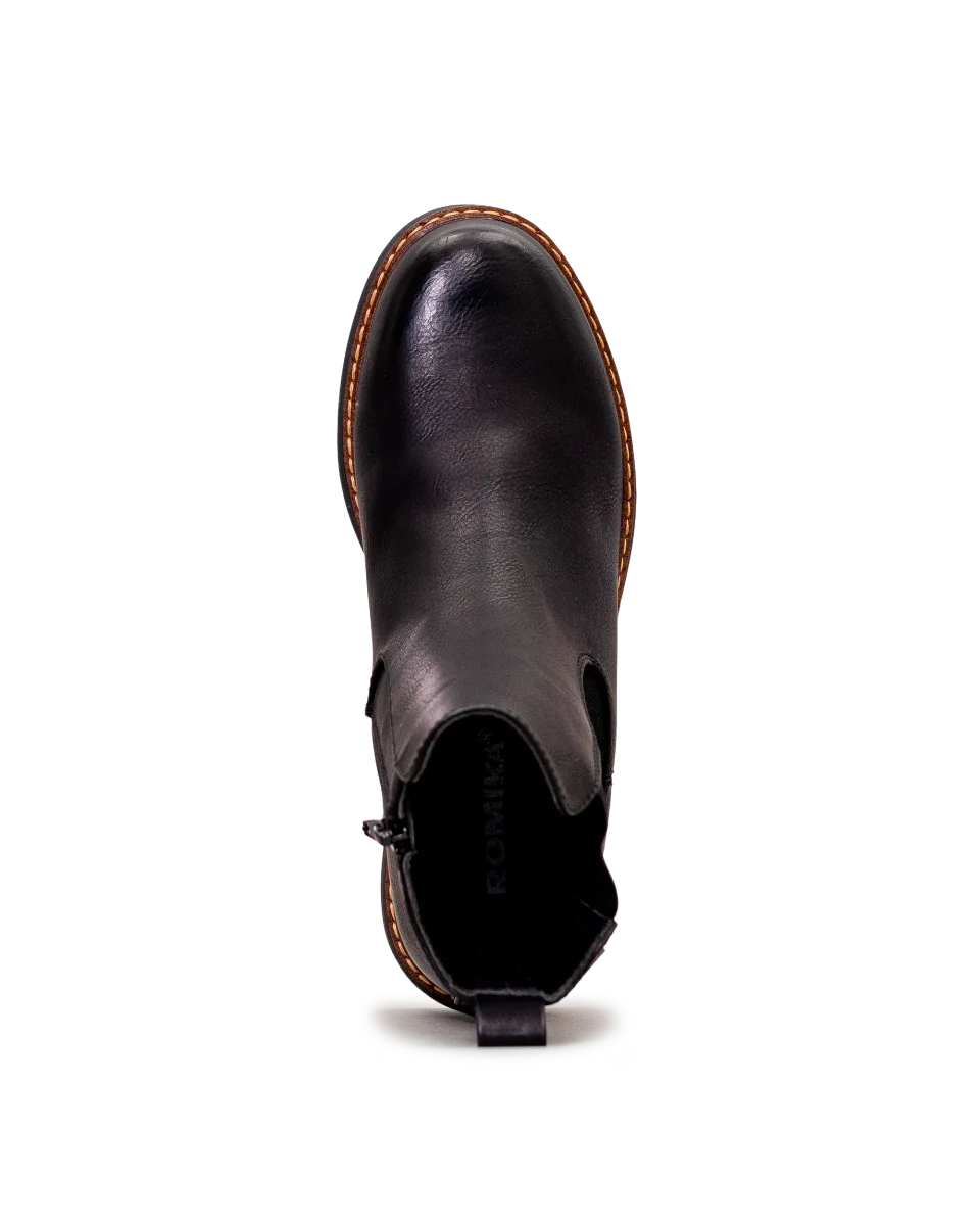 Ces bottes noir uni adoptent une silhouette Chelsea chic et polyvalente. Leur élastique latéral permet un enfilage facile et rapide. Alliant robustesse et confort, elles s’adaptent aux tenues décontractées comme aux looks plus habillés. Un modèle sobre et élégant signé Romika.