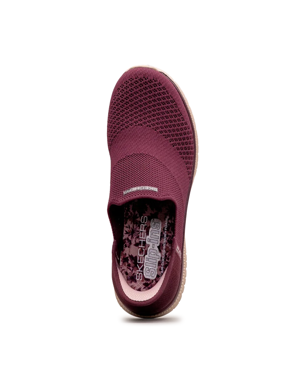 Ces chaussures aubergine offrent une silhouette épurée et un confort inégalé. Leur construction extensible s’ajuste facilement au pied. Ultra légères et sans lacets, elles assurent une grande liberté de mouvement. Un choix idéal pour les femmes à la recherche de simplicité et de bien-être, avec la qualité Skechers.