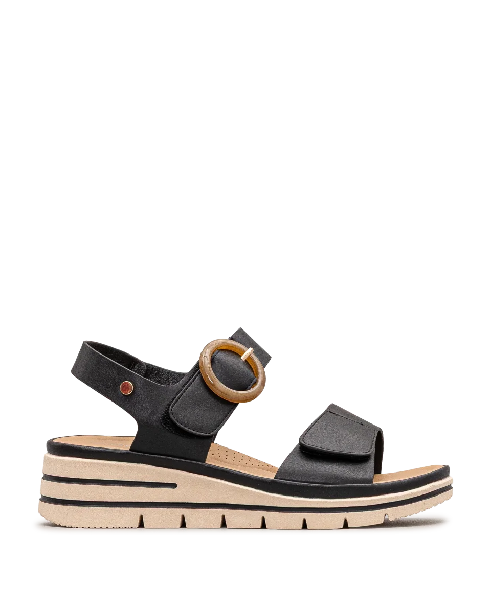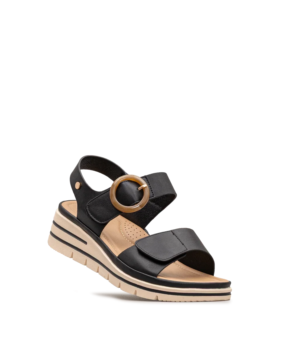 Ces sandales noires élégantes sont idéales pour un usage quotidien avec une touche raffinée. Leur semelle compensée offre une hauteur discrète et un bon maintien. Faciles à ajuster grâce à leurs attaches pratiques, elles conviennent à toutes les morphologies. Un choix parfait pour celles qui veulent allier confort et style.