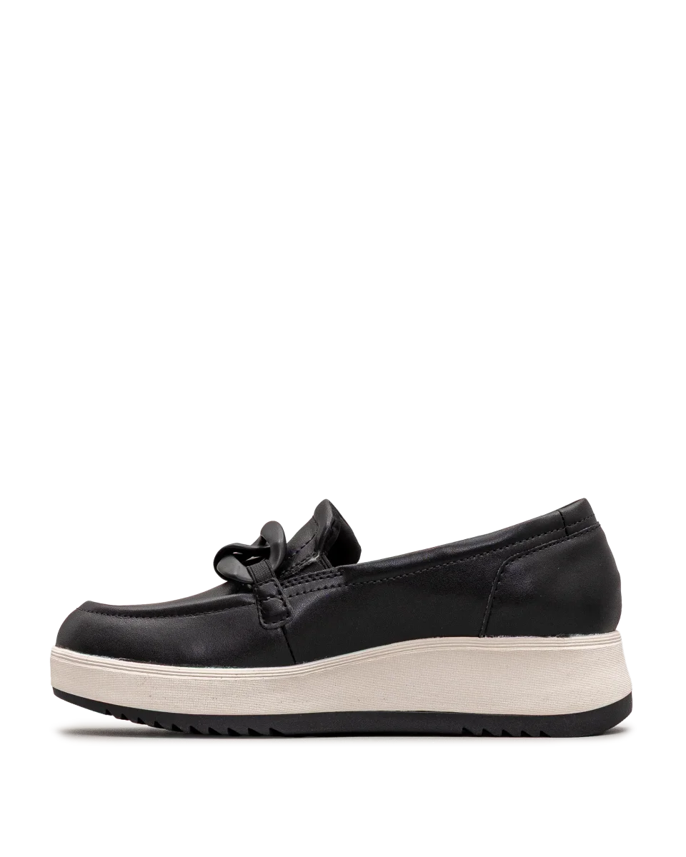 Ces chaussures noires élégantes rehaussent toutes vos tenues avec sobriété. Leur semelle compensée assure une démarche stable et confortable. Faciles à enfiler, elles conviennent autant pour le bureau que pour les sorties. Un modèle signé Clarks qui conjugue style et aisance.